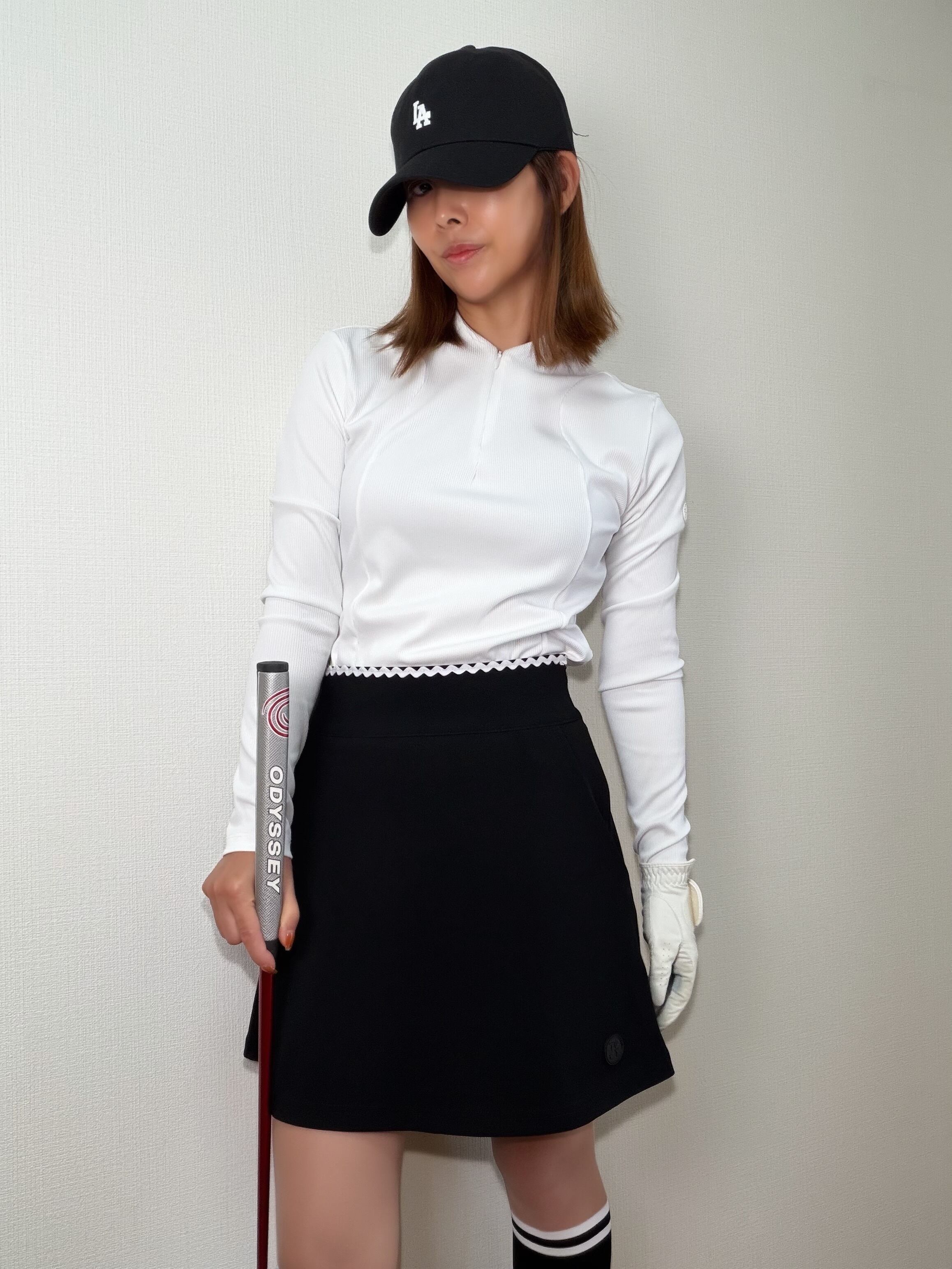 さらっとしたポリエステル×ポリウレタン素材を使用したゴルフスカート。
