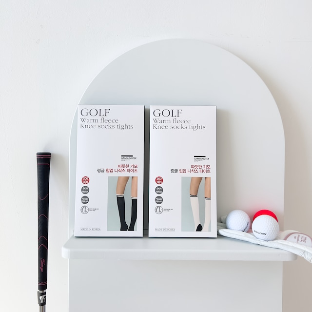 *即納*冬用GOLF ringle knee socks tights(Black / White)