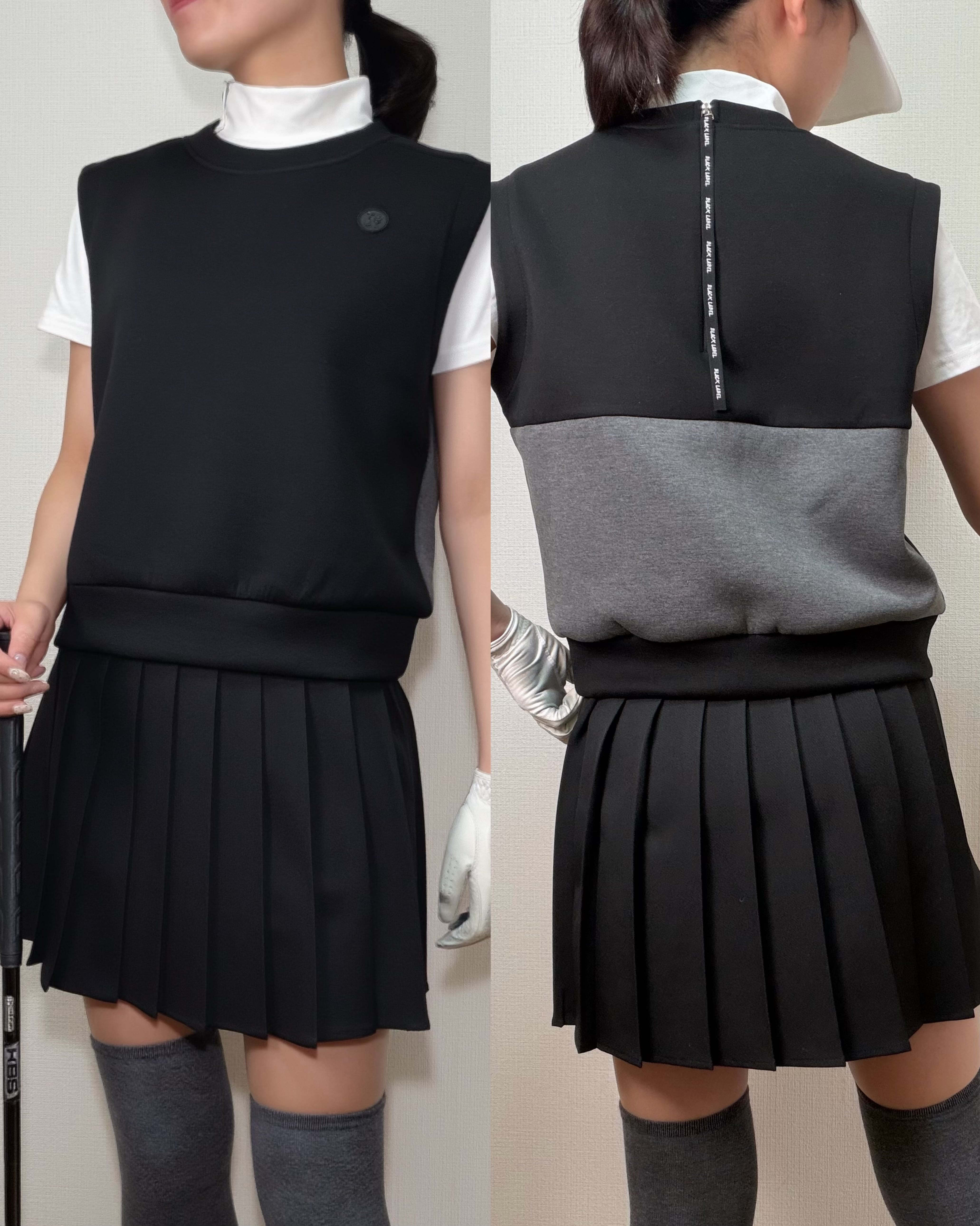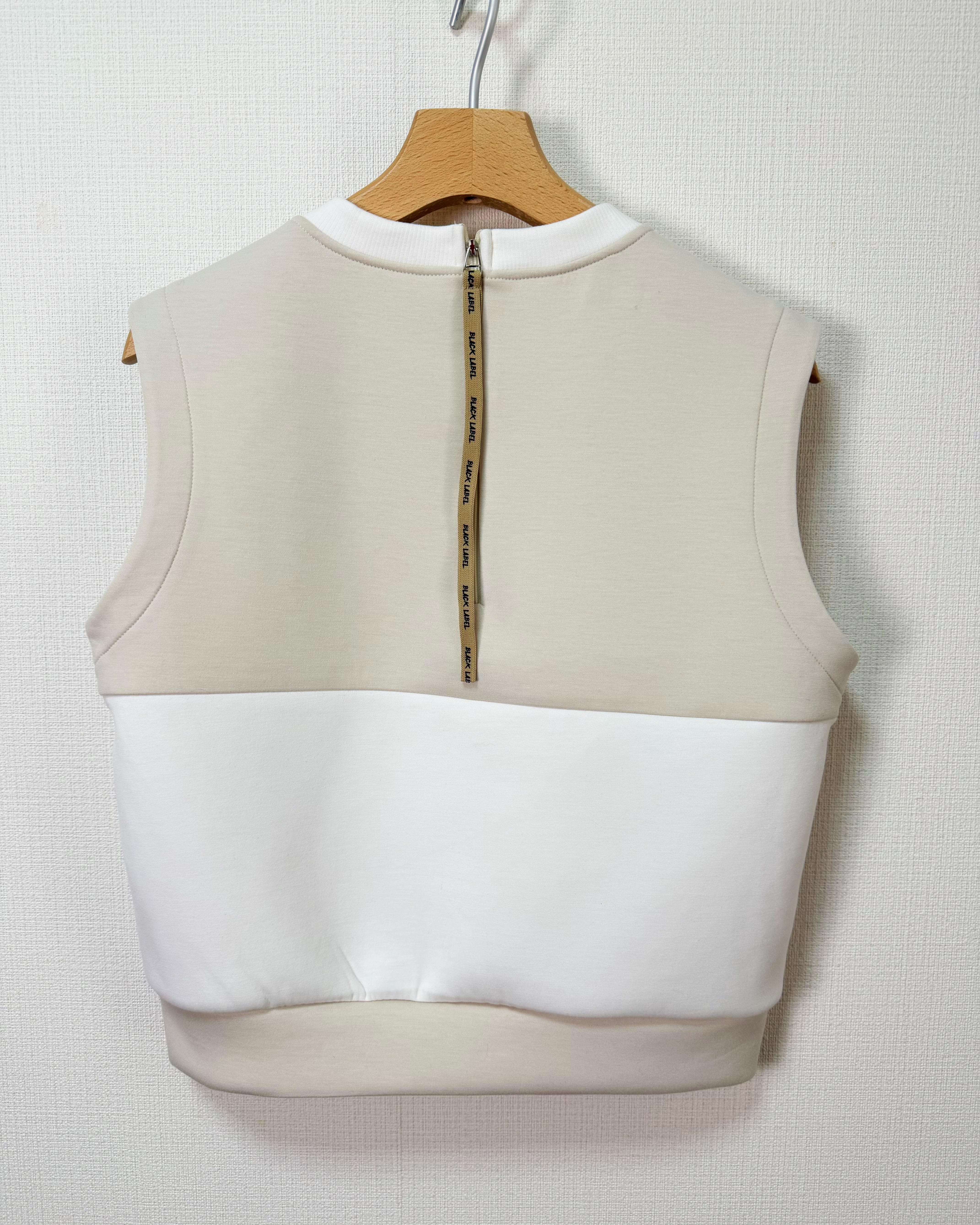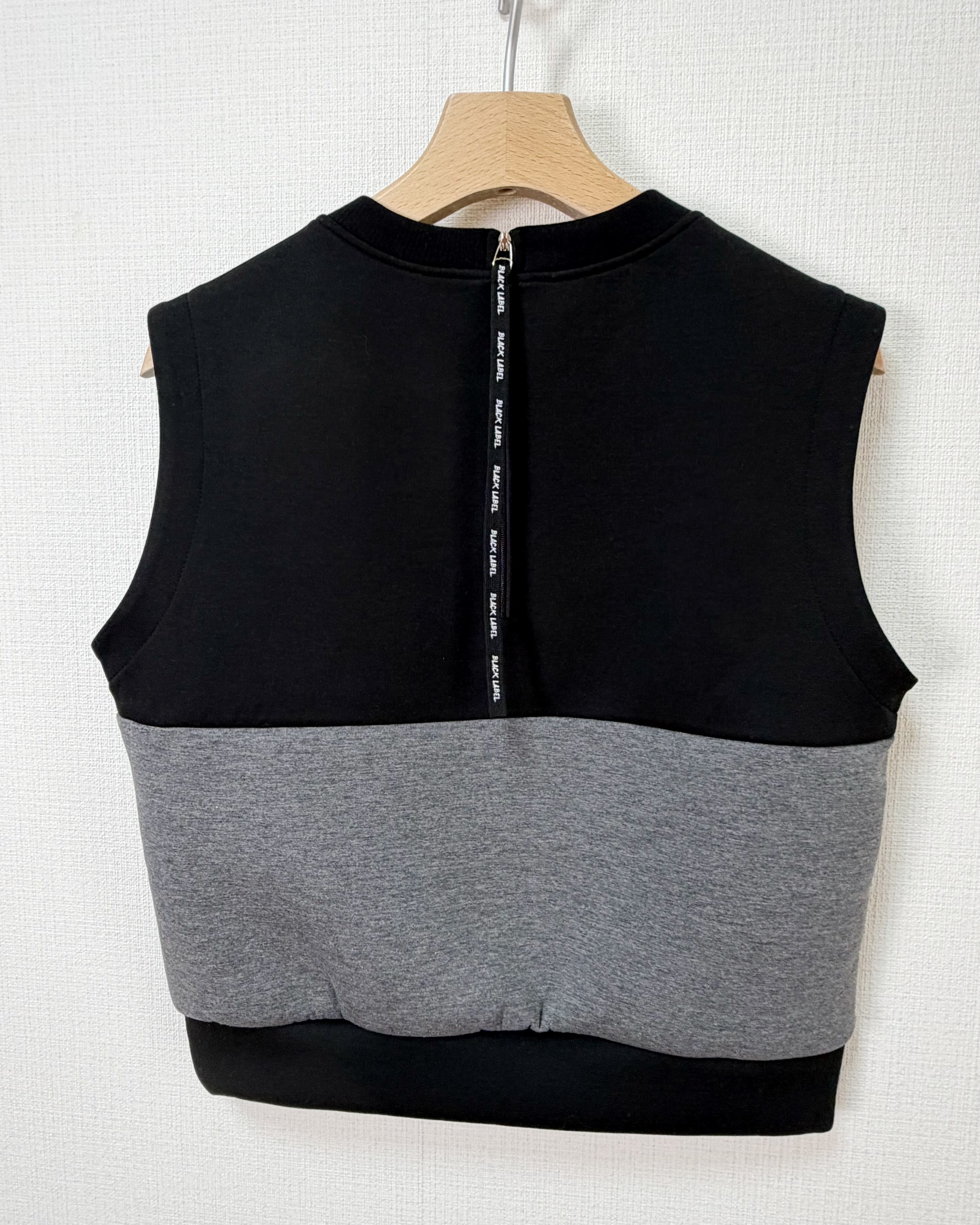 *即納*Contrast Panel Zip-Back Vest (Black / Beige)