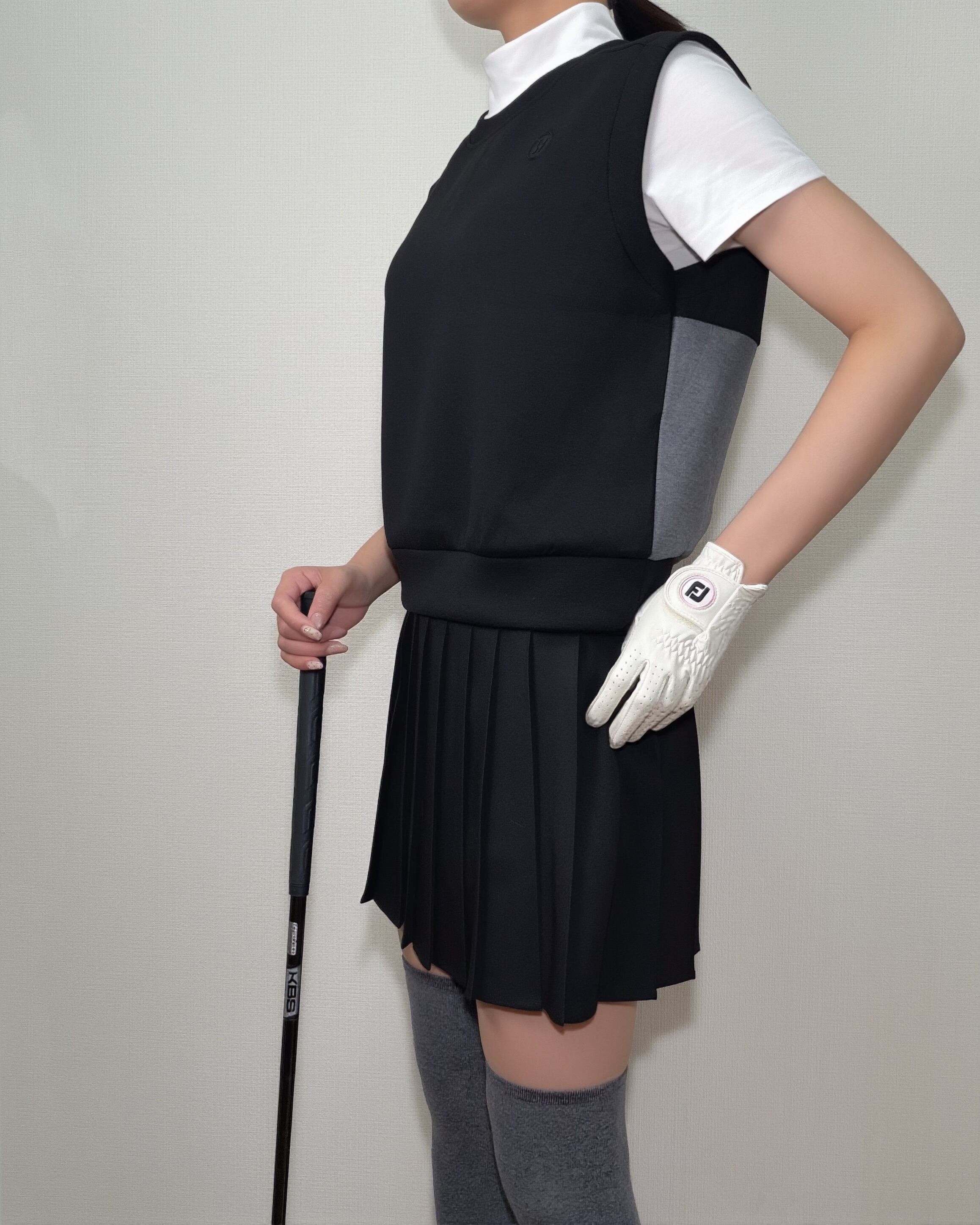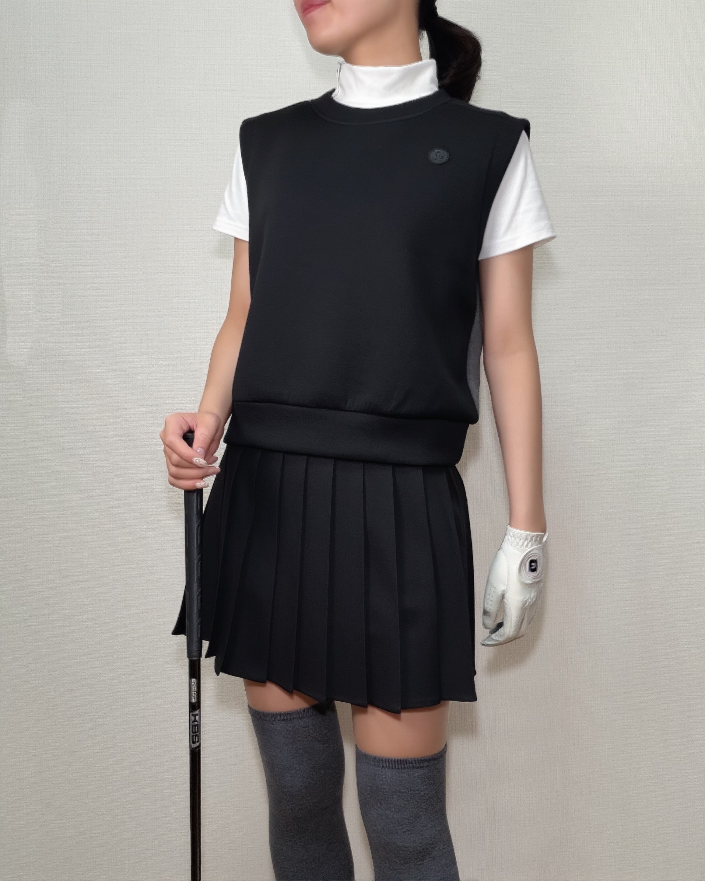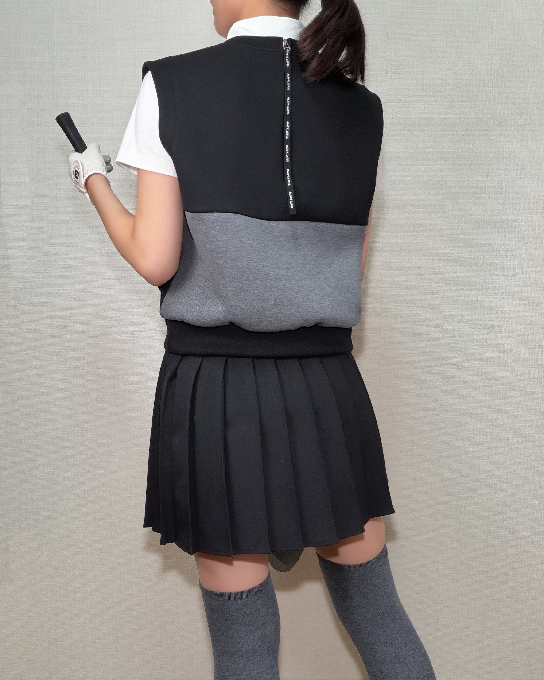 *即納*Contrast Panel Zip-Back Vest (Black / Beige)