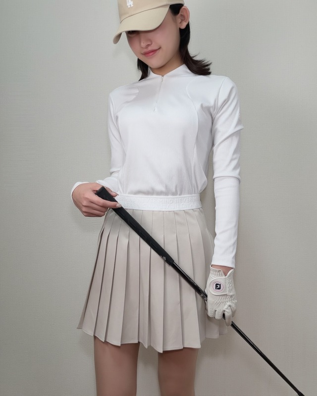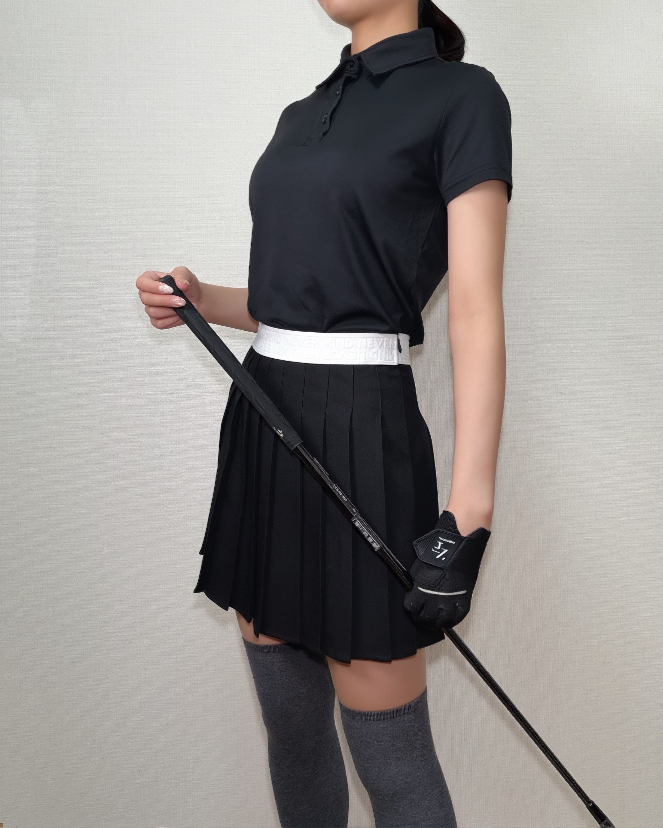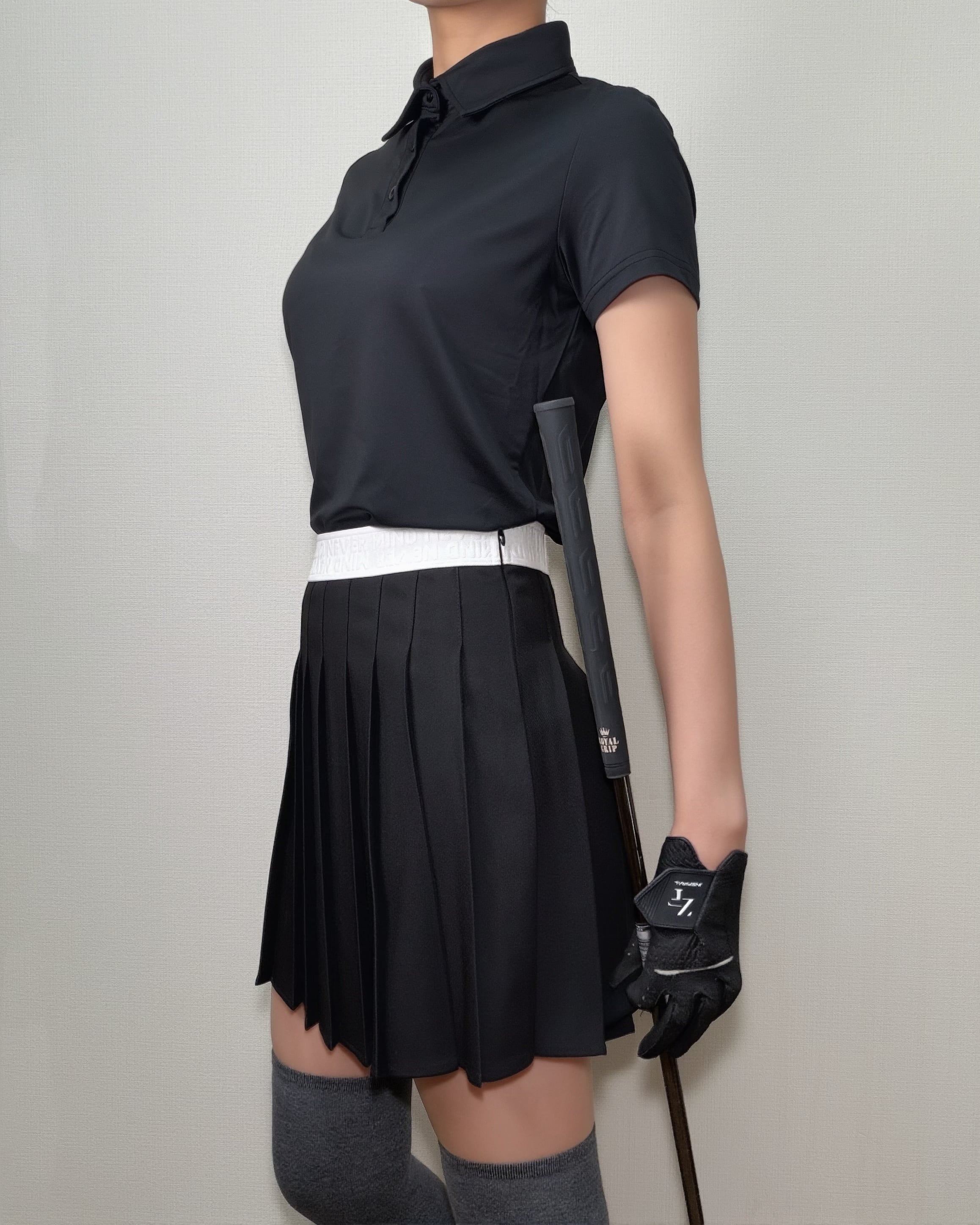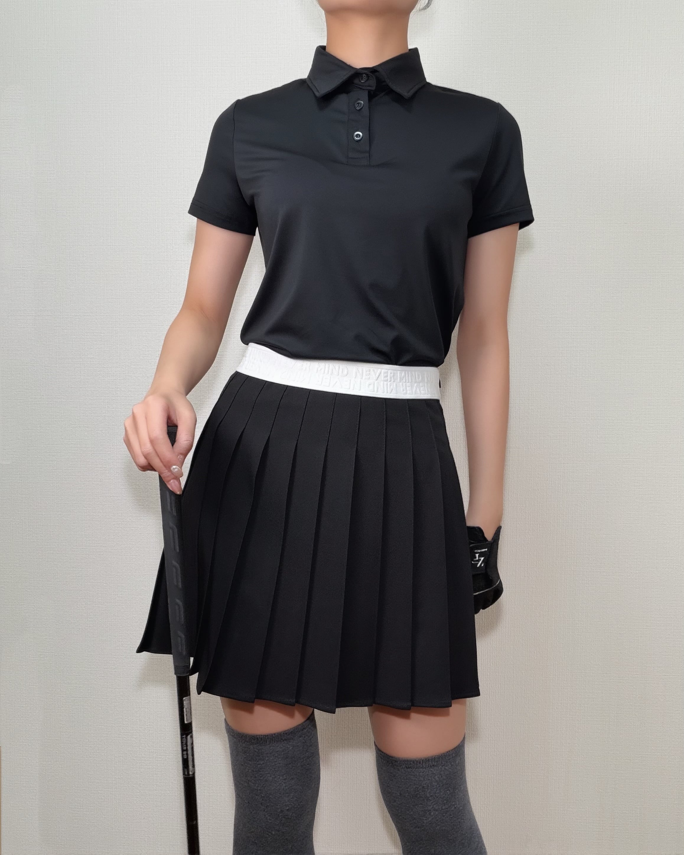 *即納*Classic Pleated Golf Skirt (Black / Beige)