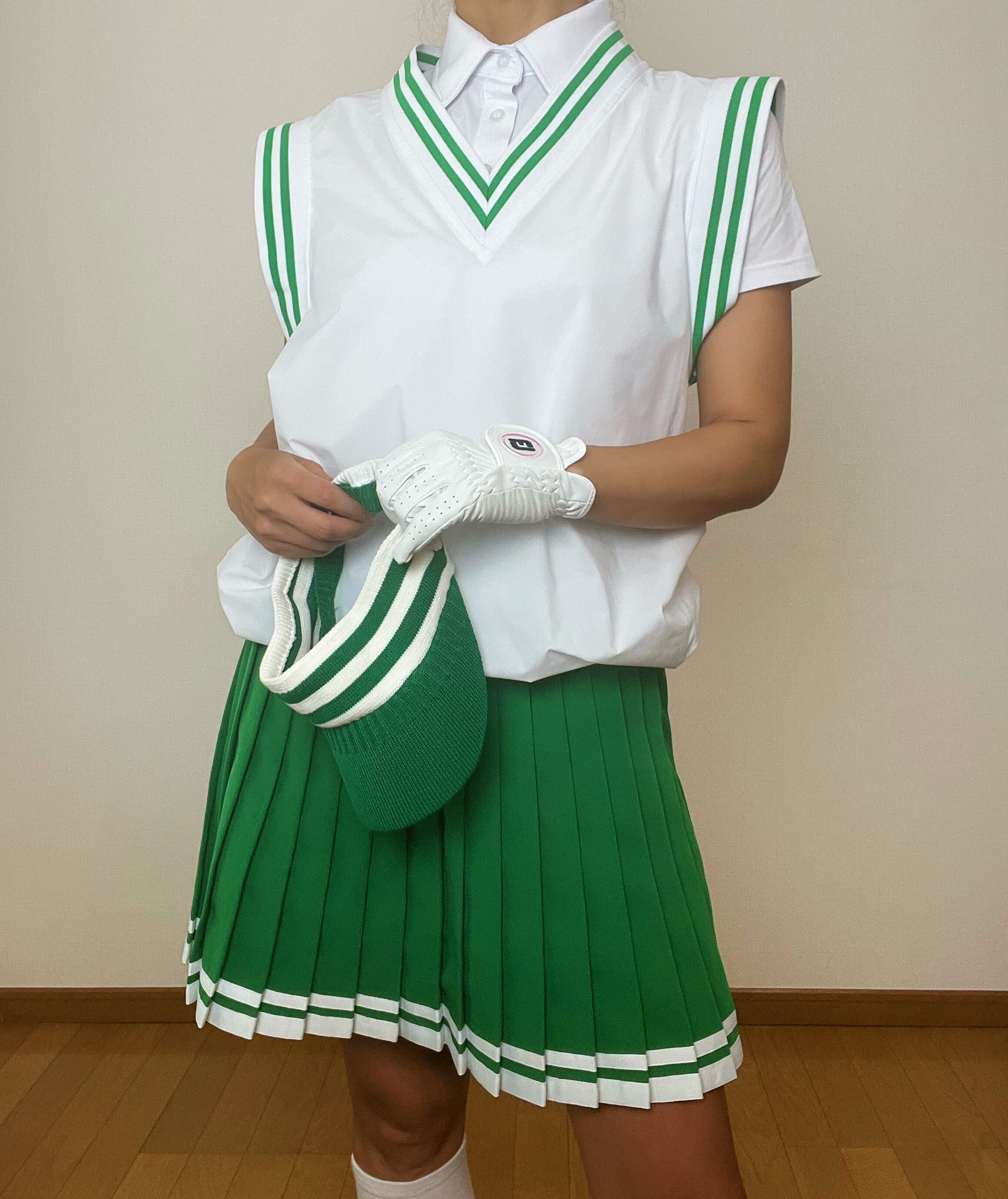 *即納*グリーンラインプリーツスカート (Green)