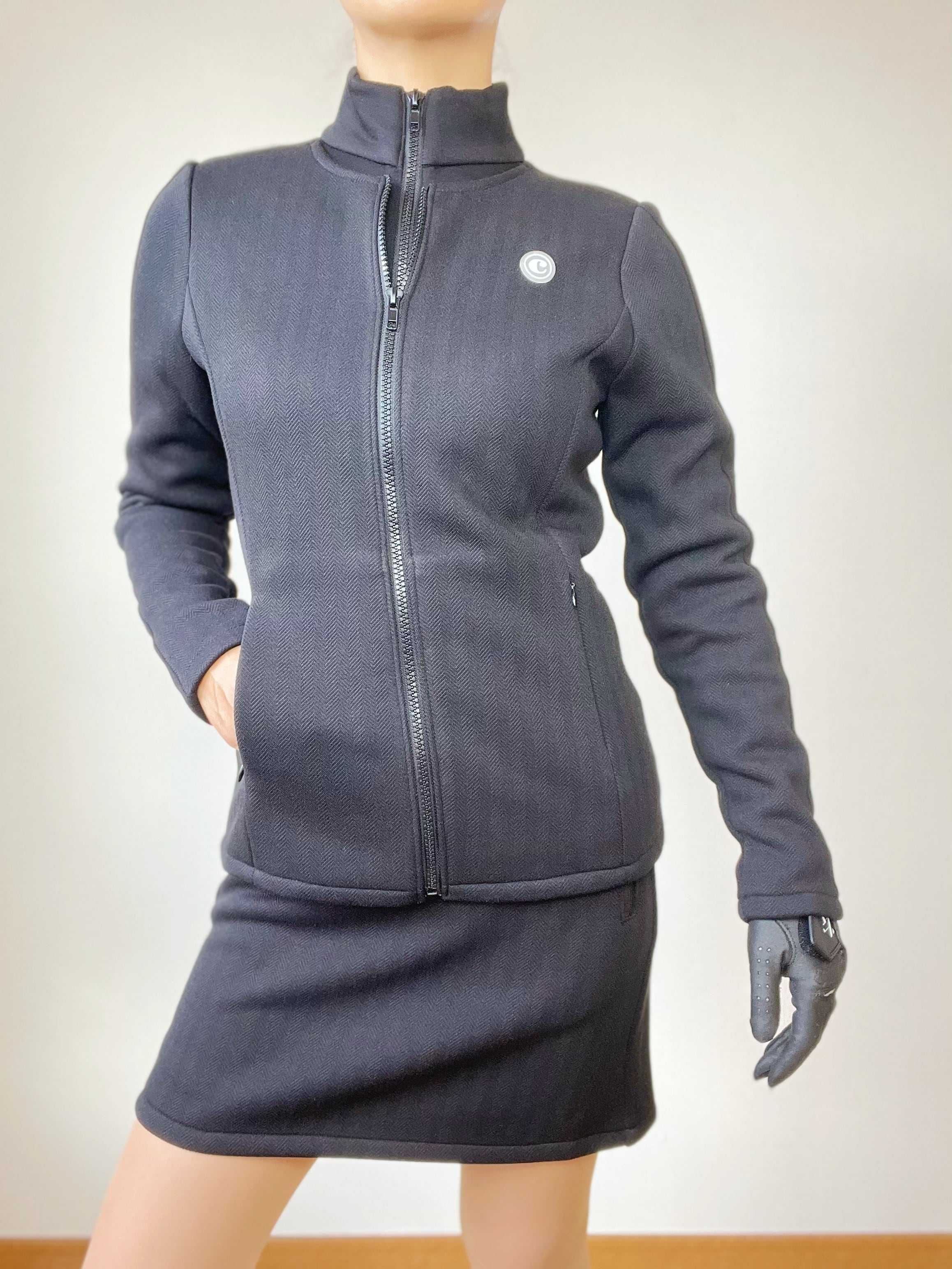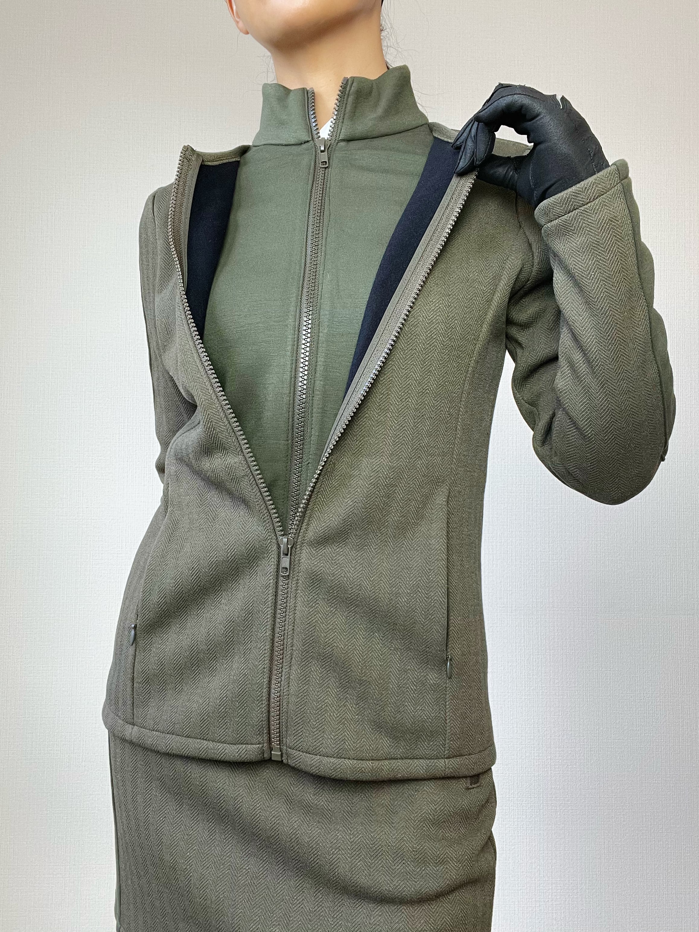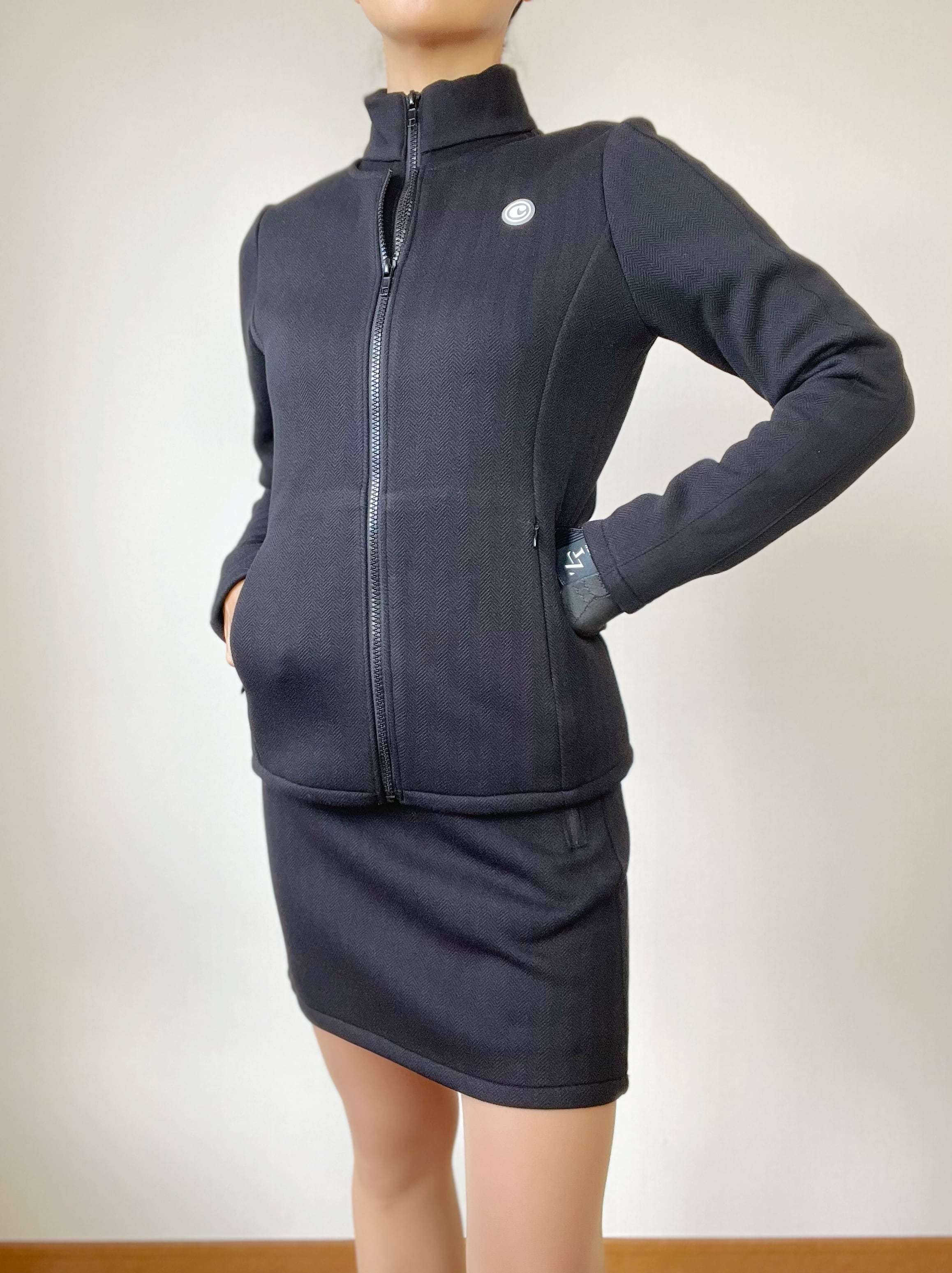 ポリエステルメインの生地はシワになりにくく、美しいシルエットを保持します。裏面は柔らかい肌当たりよい起毛フリースで保温性もGood!