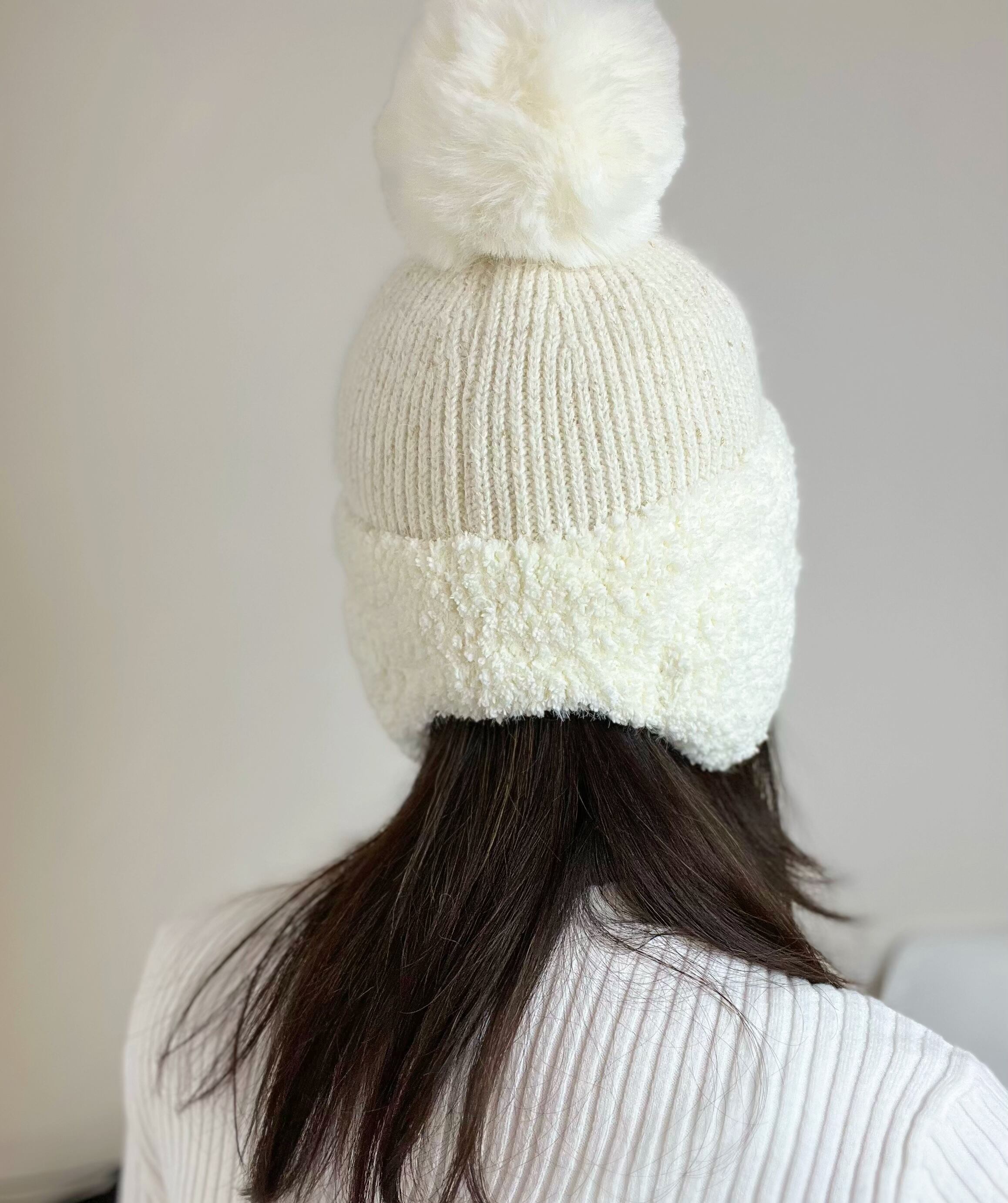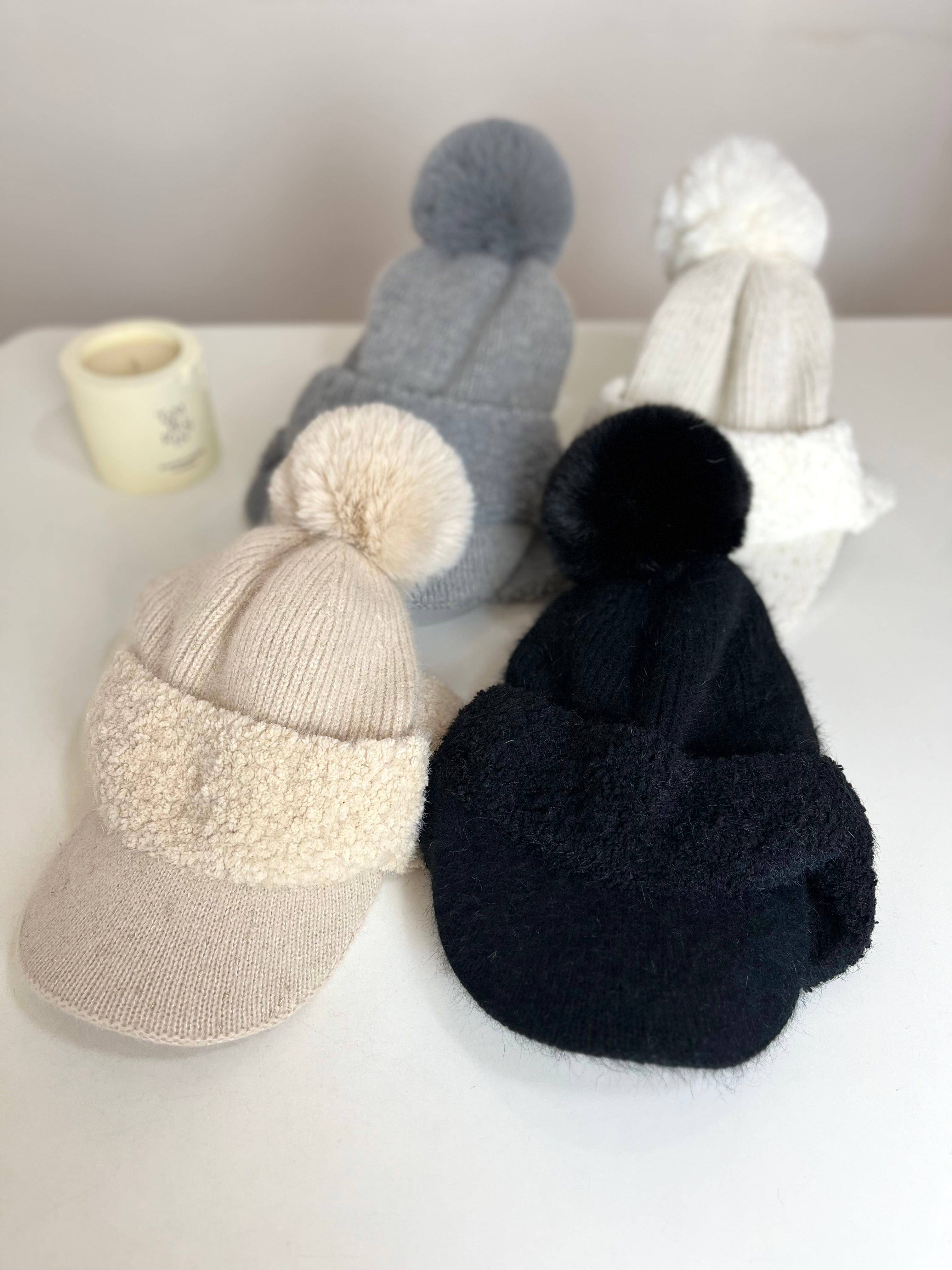 リアルラビットファーぽんぽんがリッチなふわふわ感のニットキャップ♡