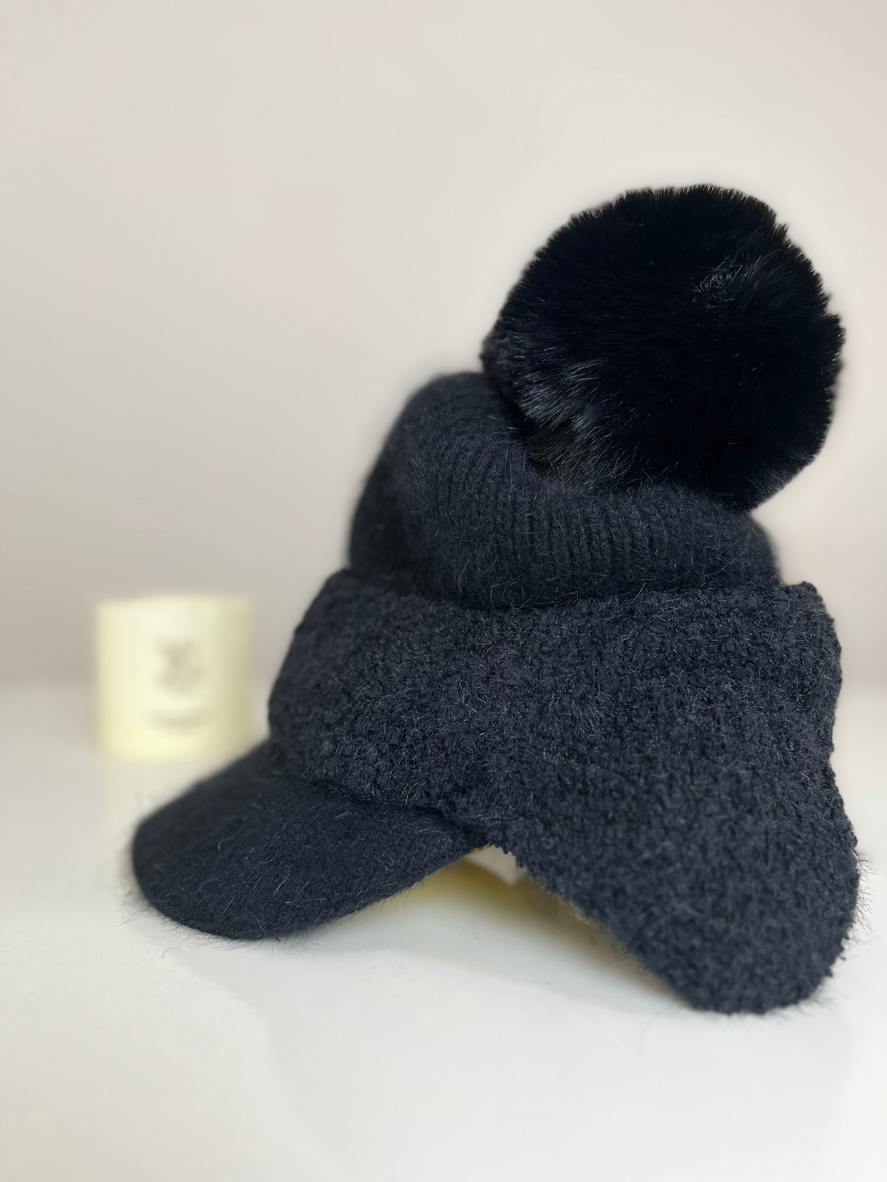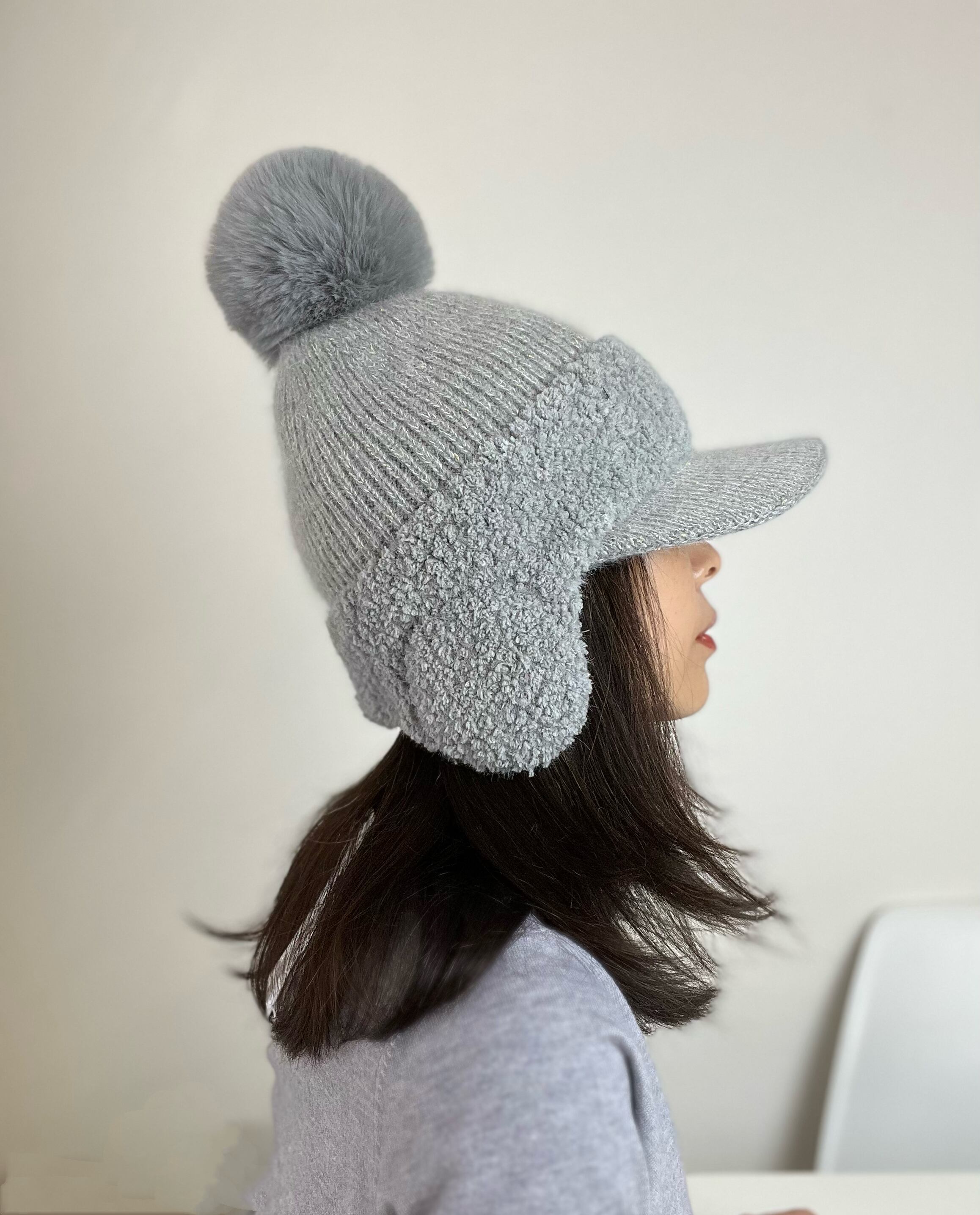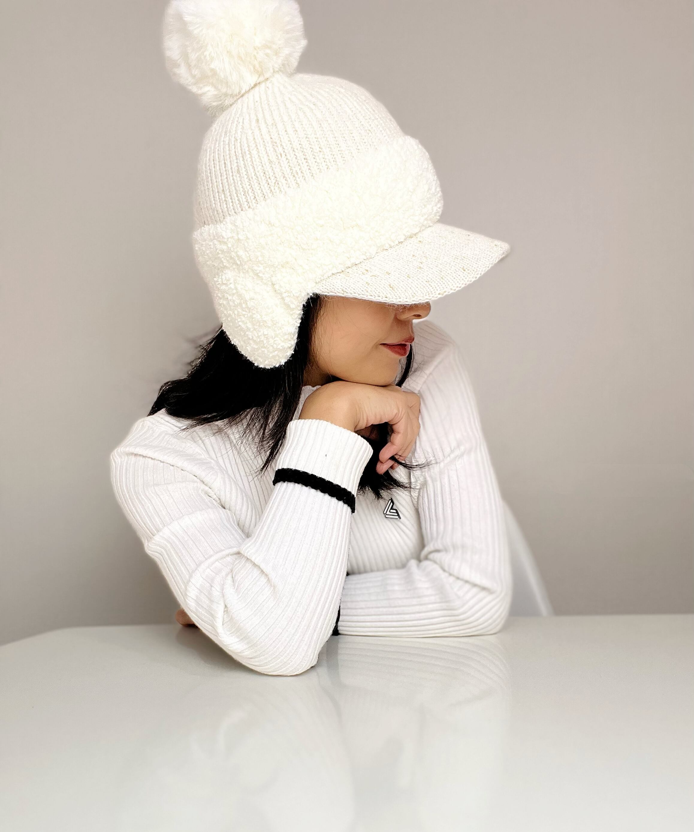 *即納*イヤーマフ付きポンポンニットキャップ (4color)