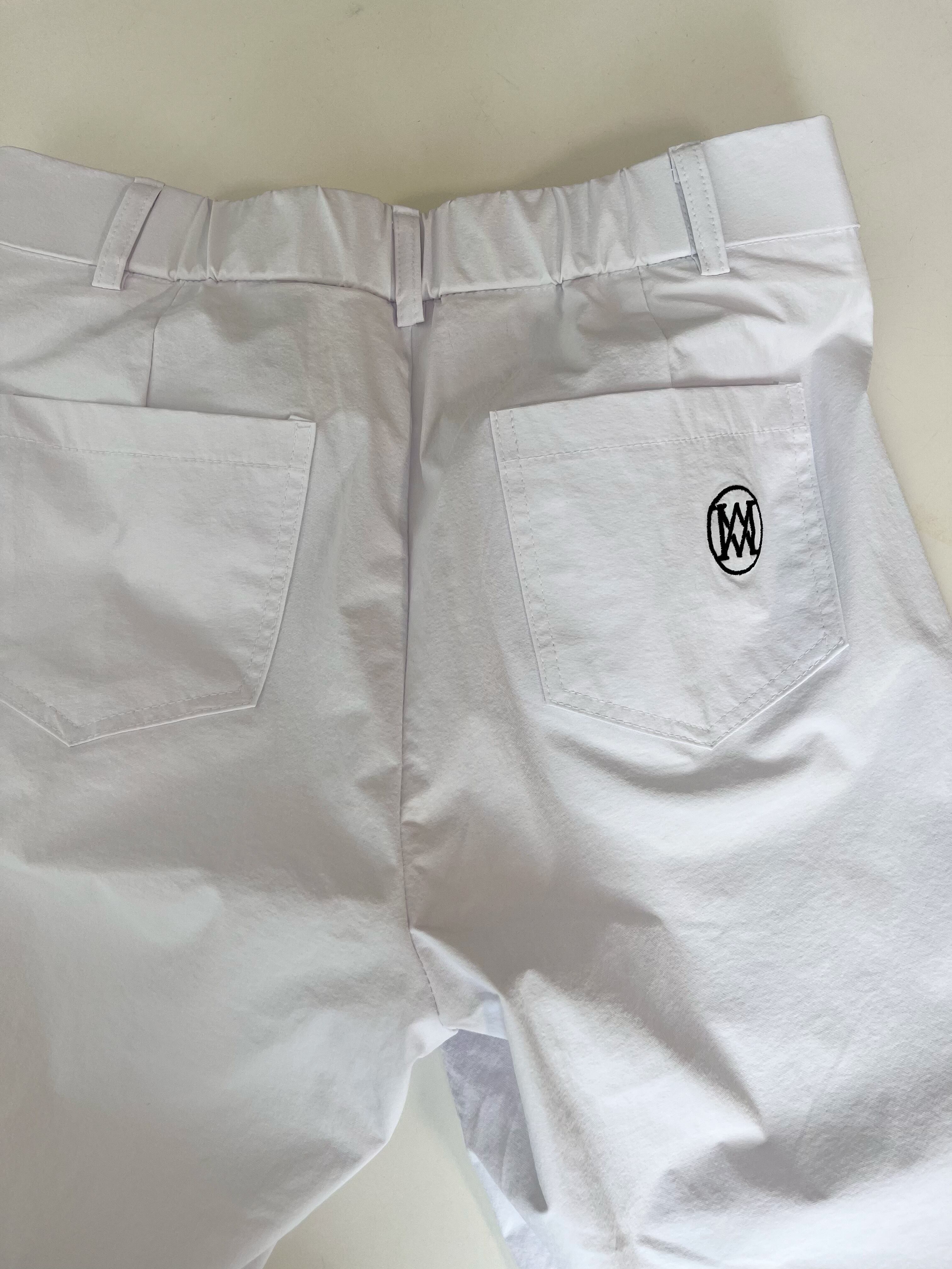 ナイロンなどを混紡したさらっシャカとした涼しい肌触りの生地感。ウエストバックはゴムで切り替え、リラクシーな着用感を叶えます。ストレッチ性高くがしゃがみ動作などをスムーズに◎ ポケットは4つ、ループ付き。ご自宅でのお手入れが可能なので、気兼ねなく着まわせます。