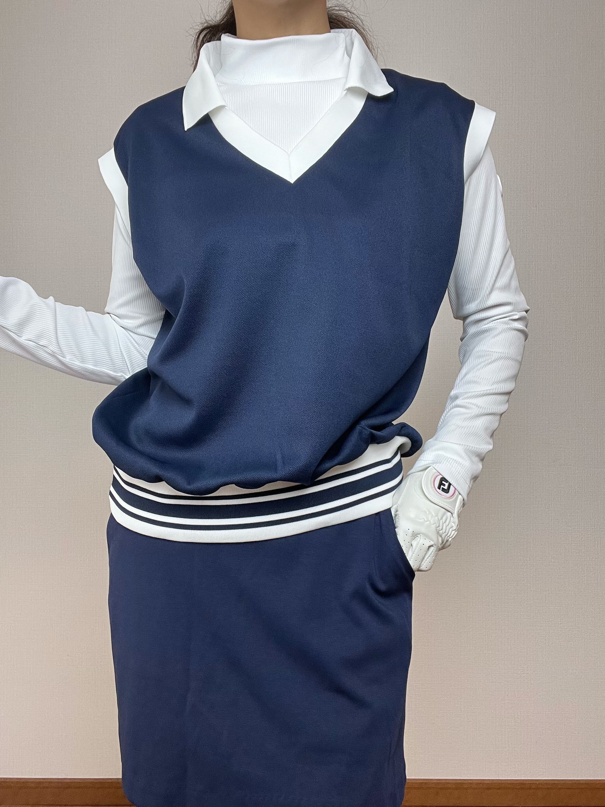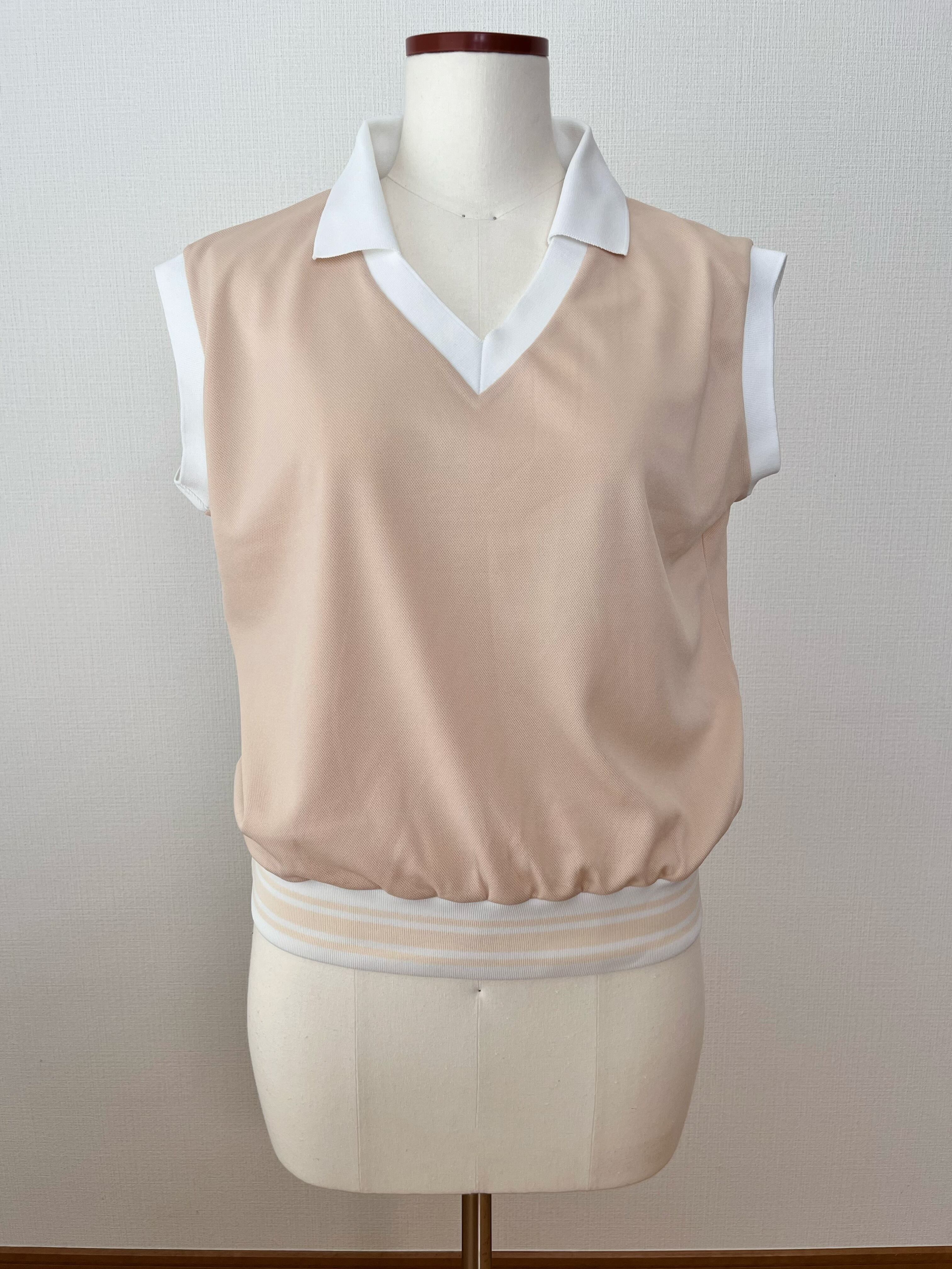 脇の開きが大きくないからノースリーブとしても着用でき、インナーの上に着ることもできます。
