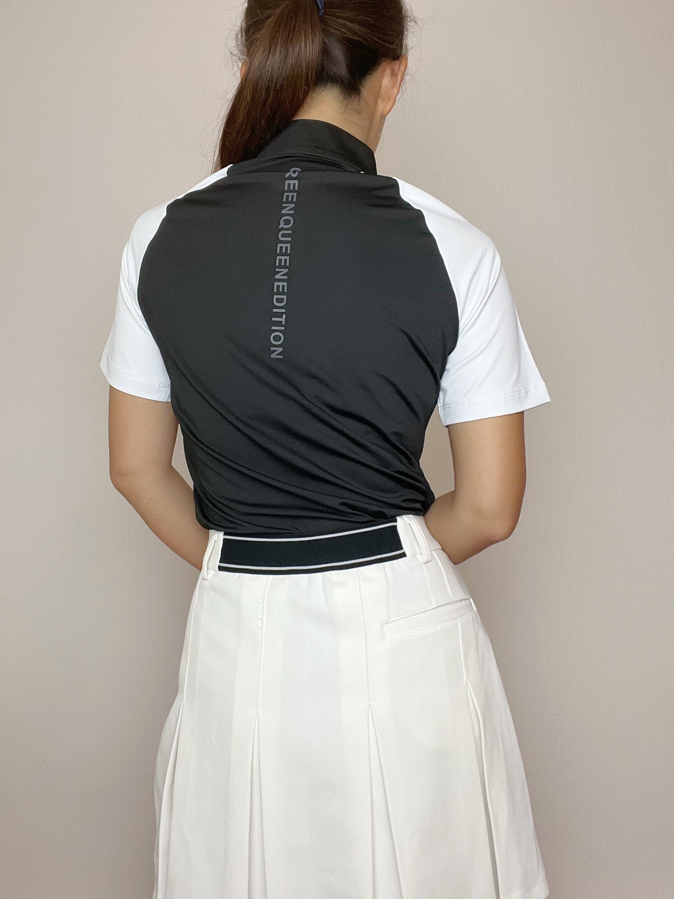 肩の切り替えで華奢見えアイテムです! デザイン性だけでなく機能も充実。着るだけで暑さ対策になる多機能素材で、暑い日のゴルフをサポートしてくれます◎