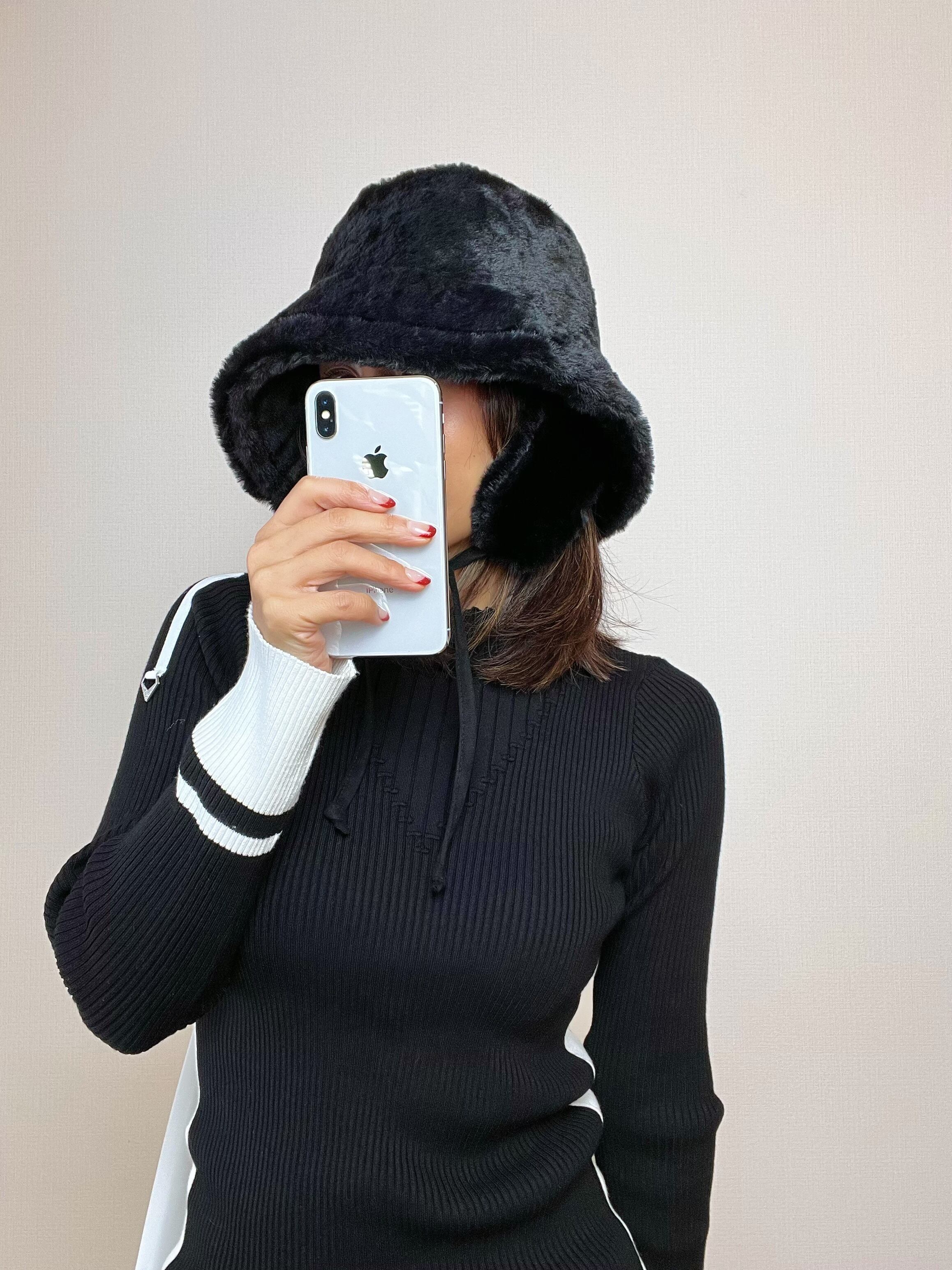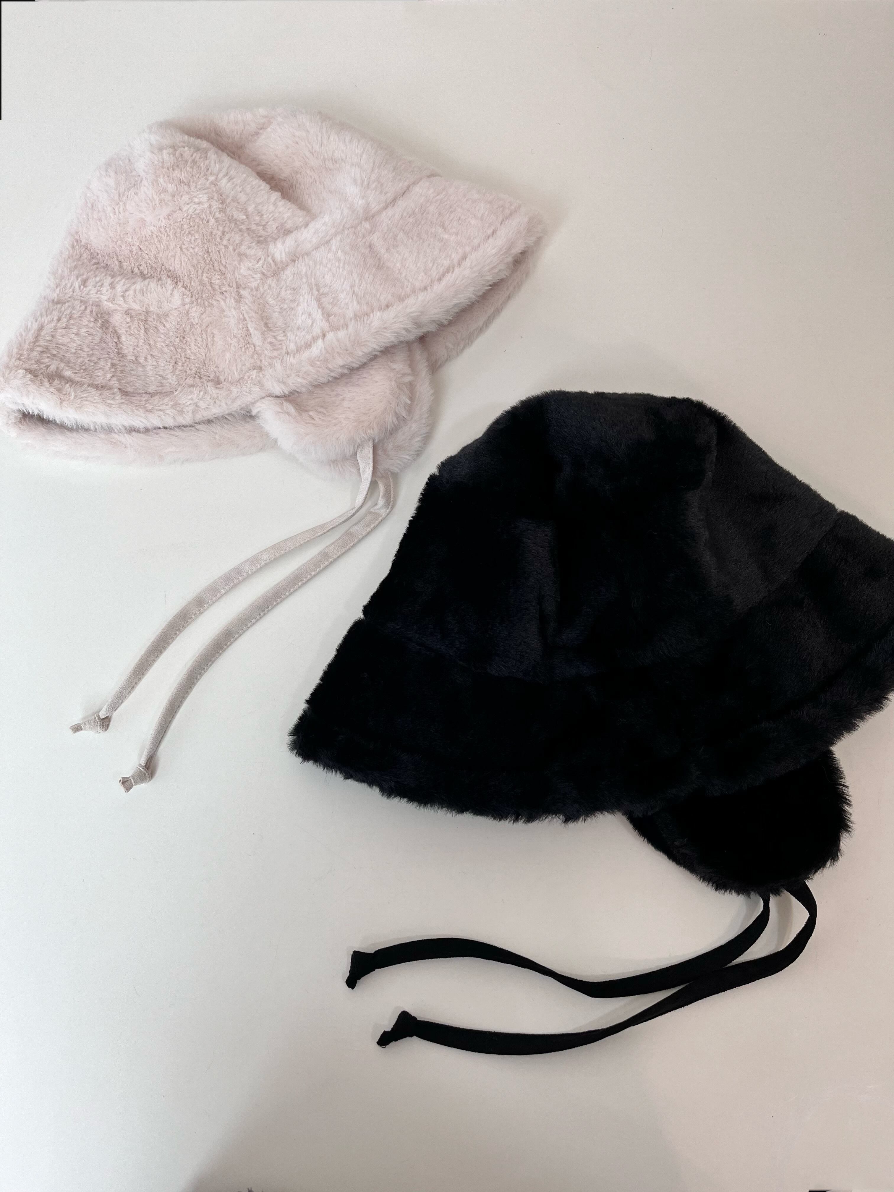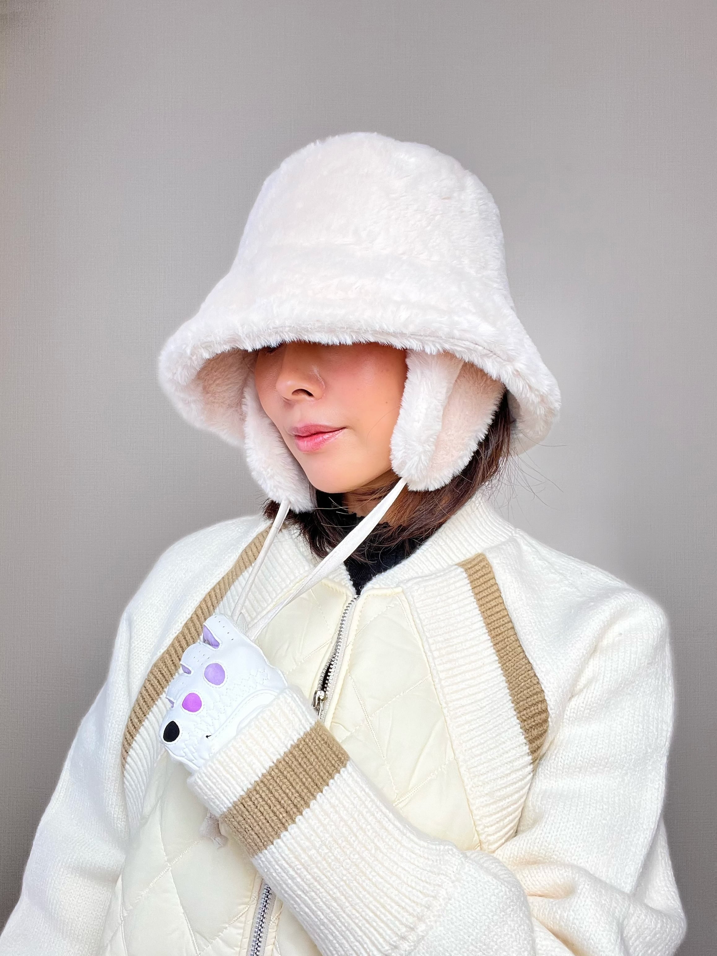 *即納*イヤーマフ付きfaux fur Bucket hat(Ivory / Black)