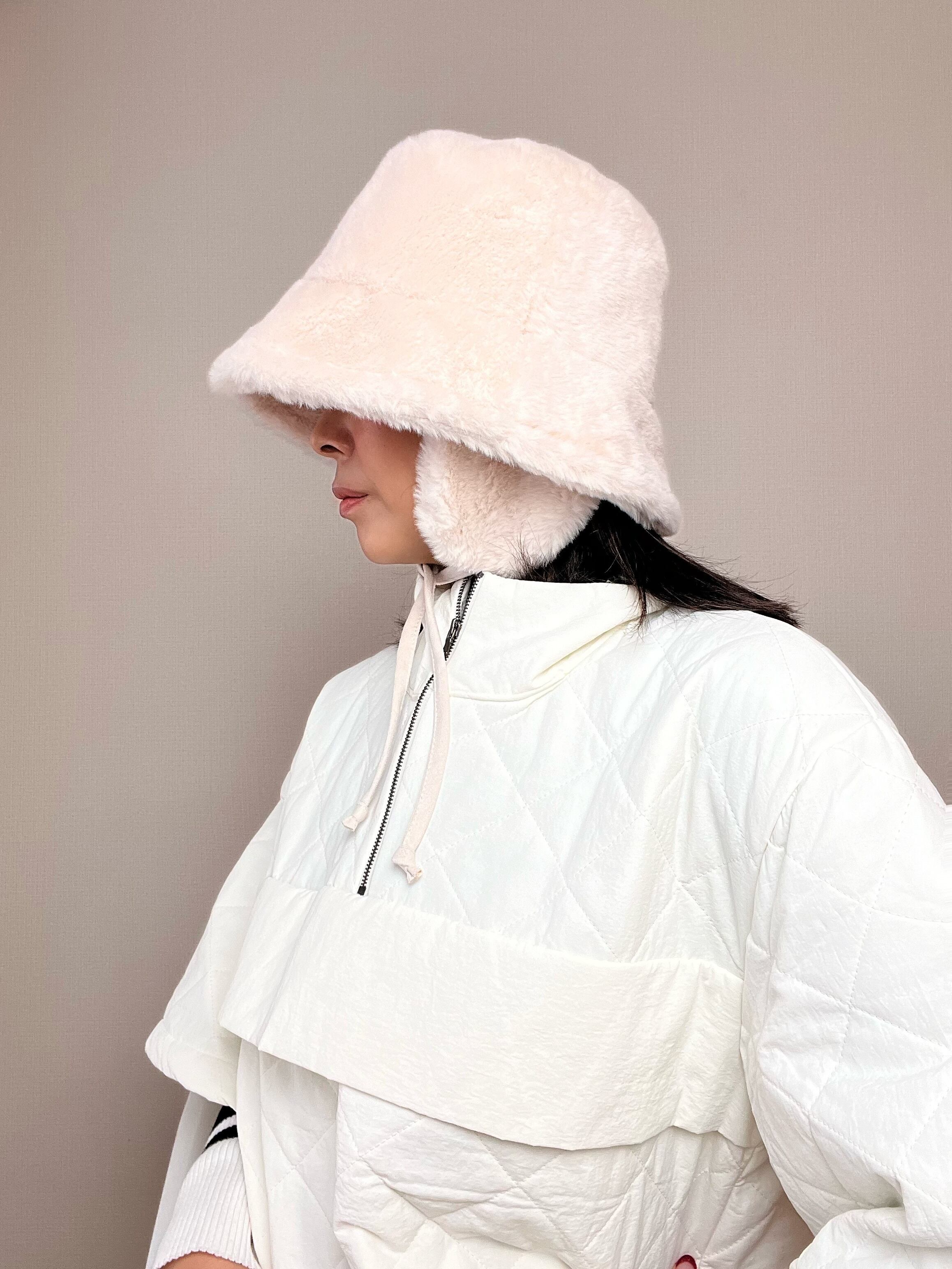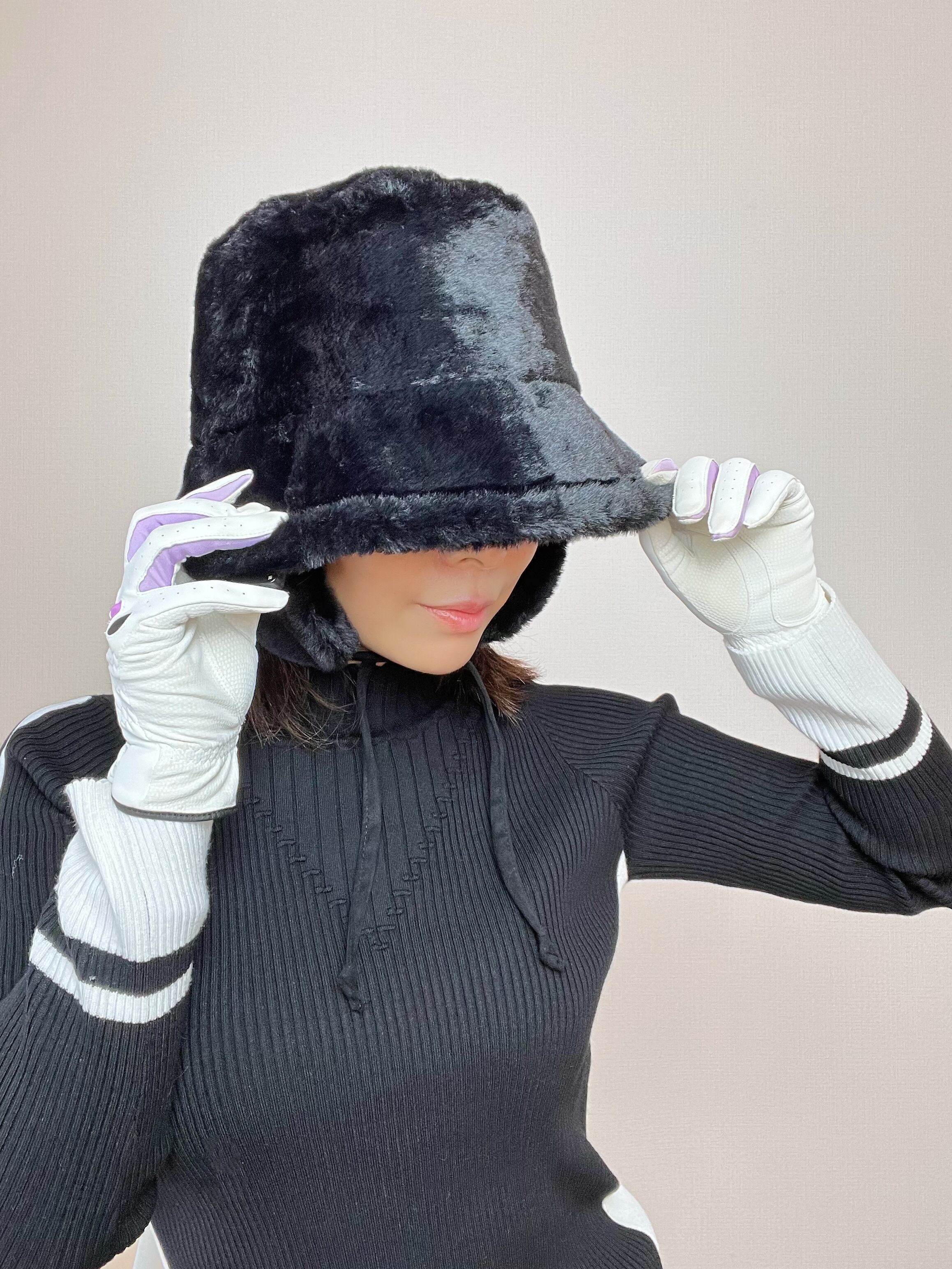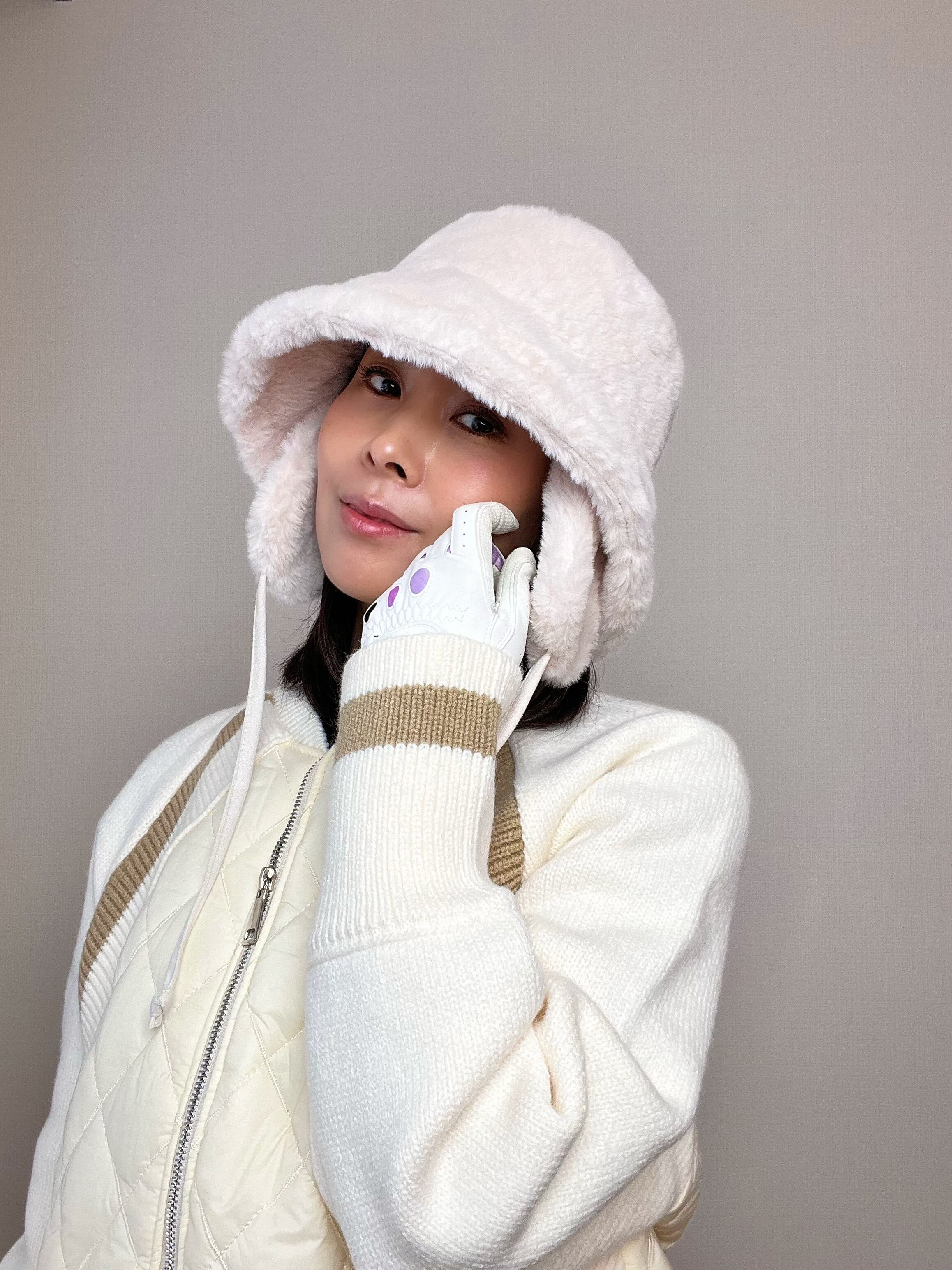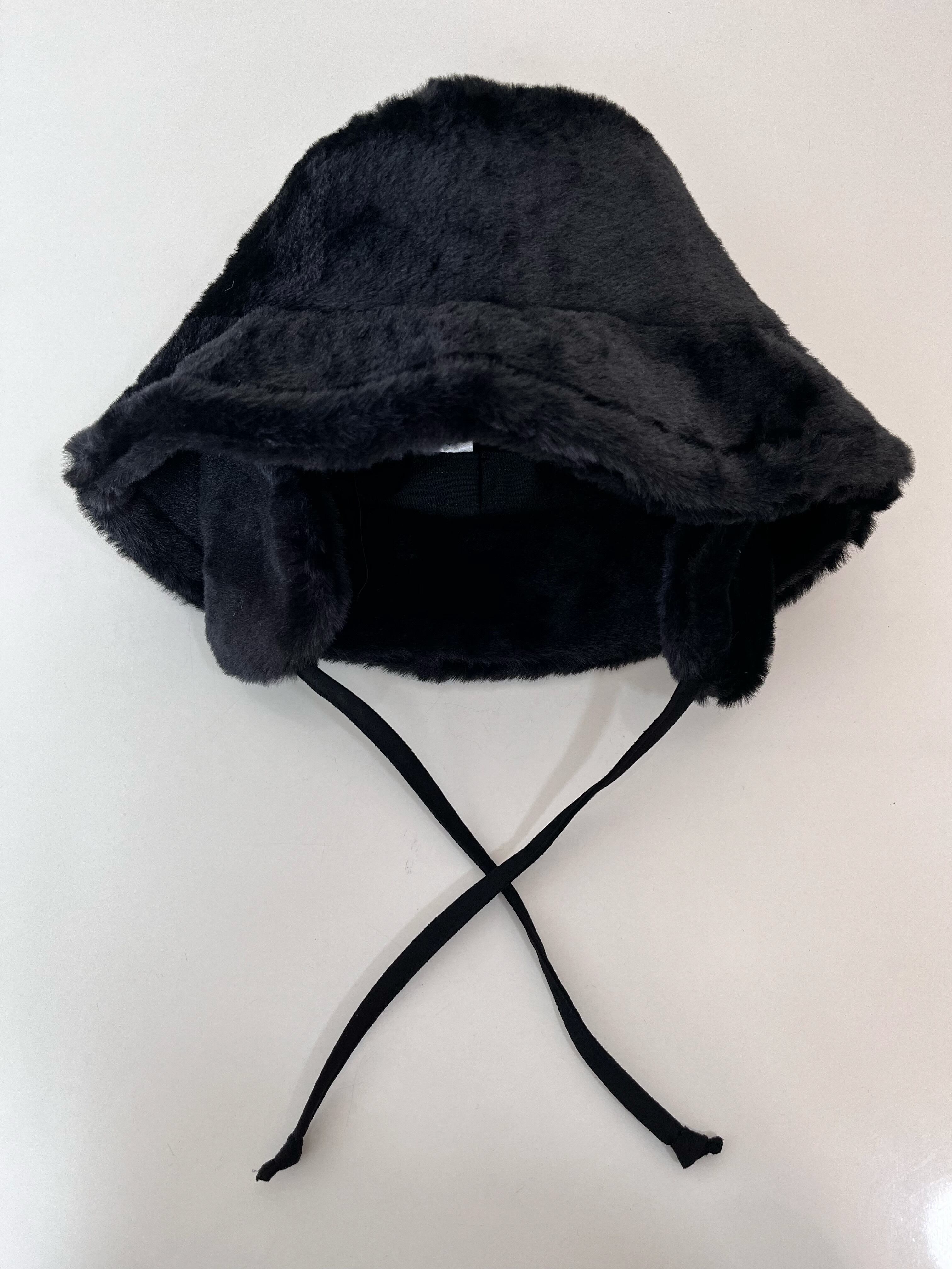 *即納*イヤーマフ付きfaux fur Bucket hat(Ivory / Black)